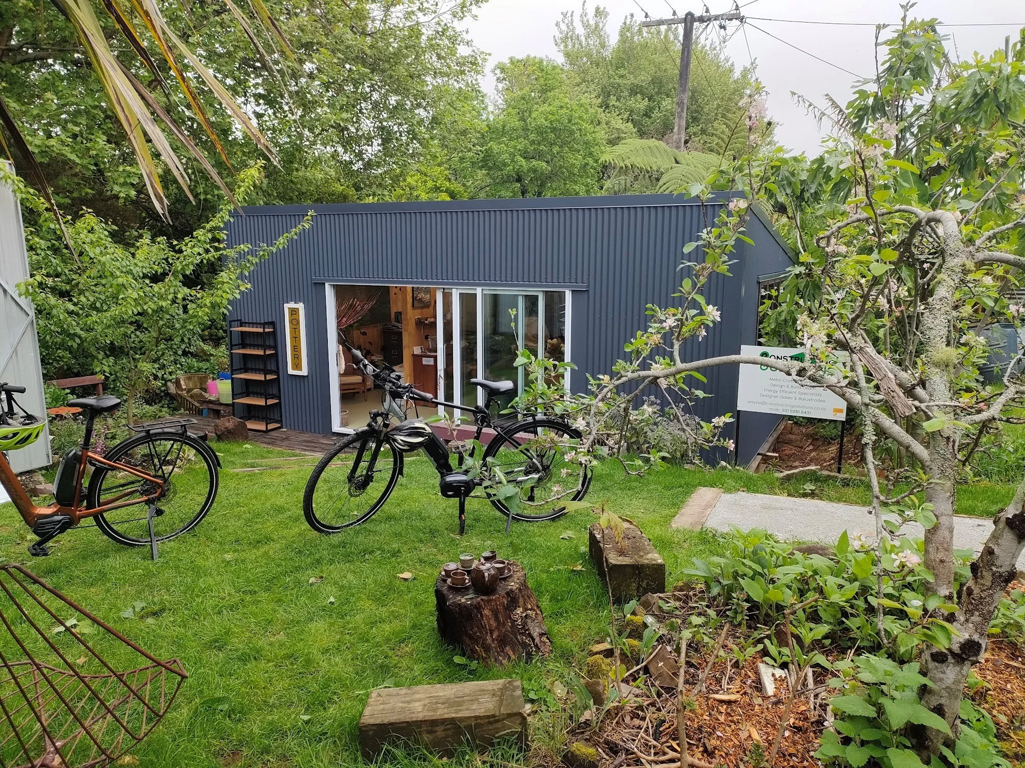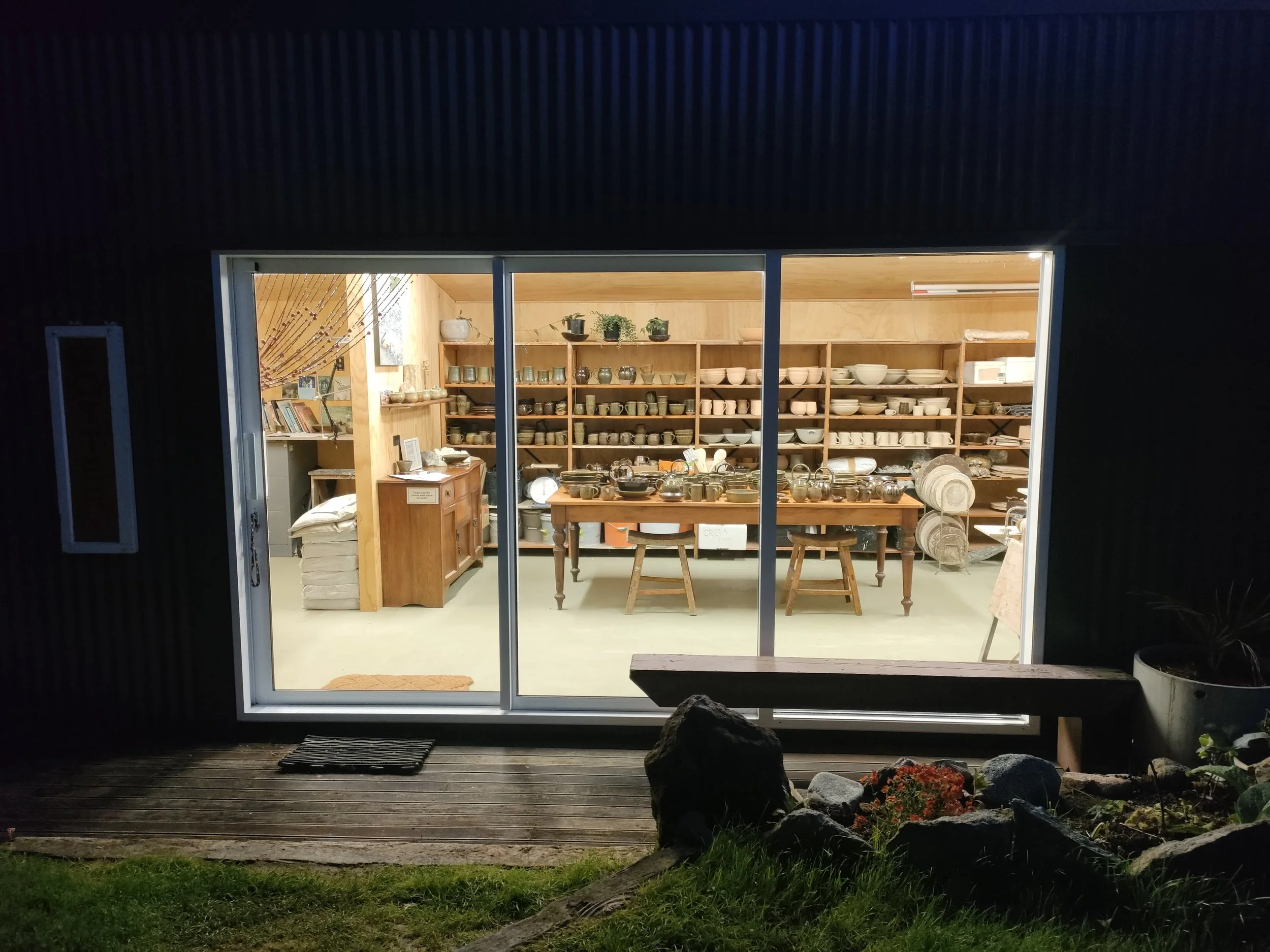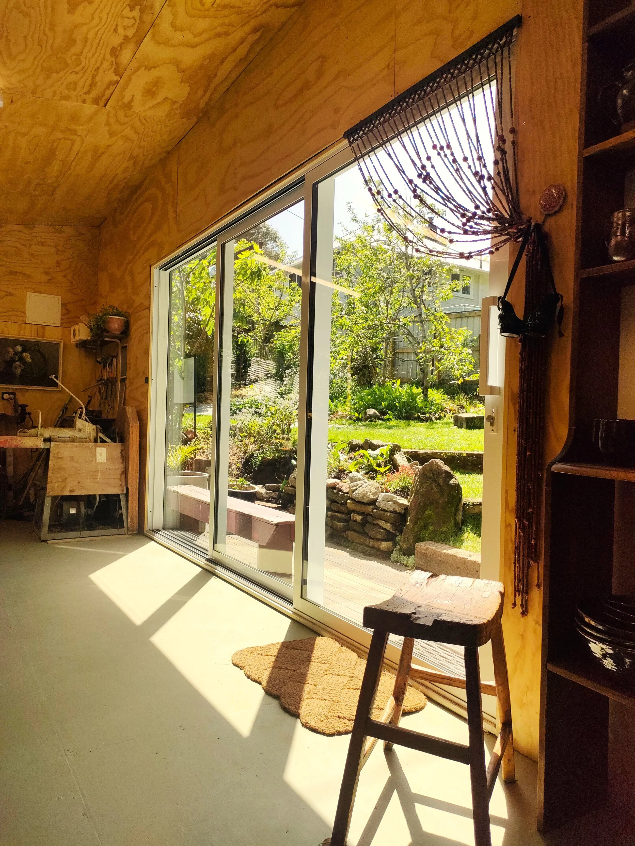 This area is also used for a specific type of drying of pottery. This studio is featured annually in the Taranaki sustainable arts trails, and has transformed the artists life by being able to work in her own back yard.
