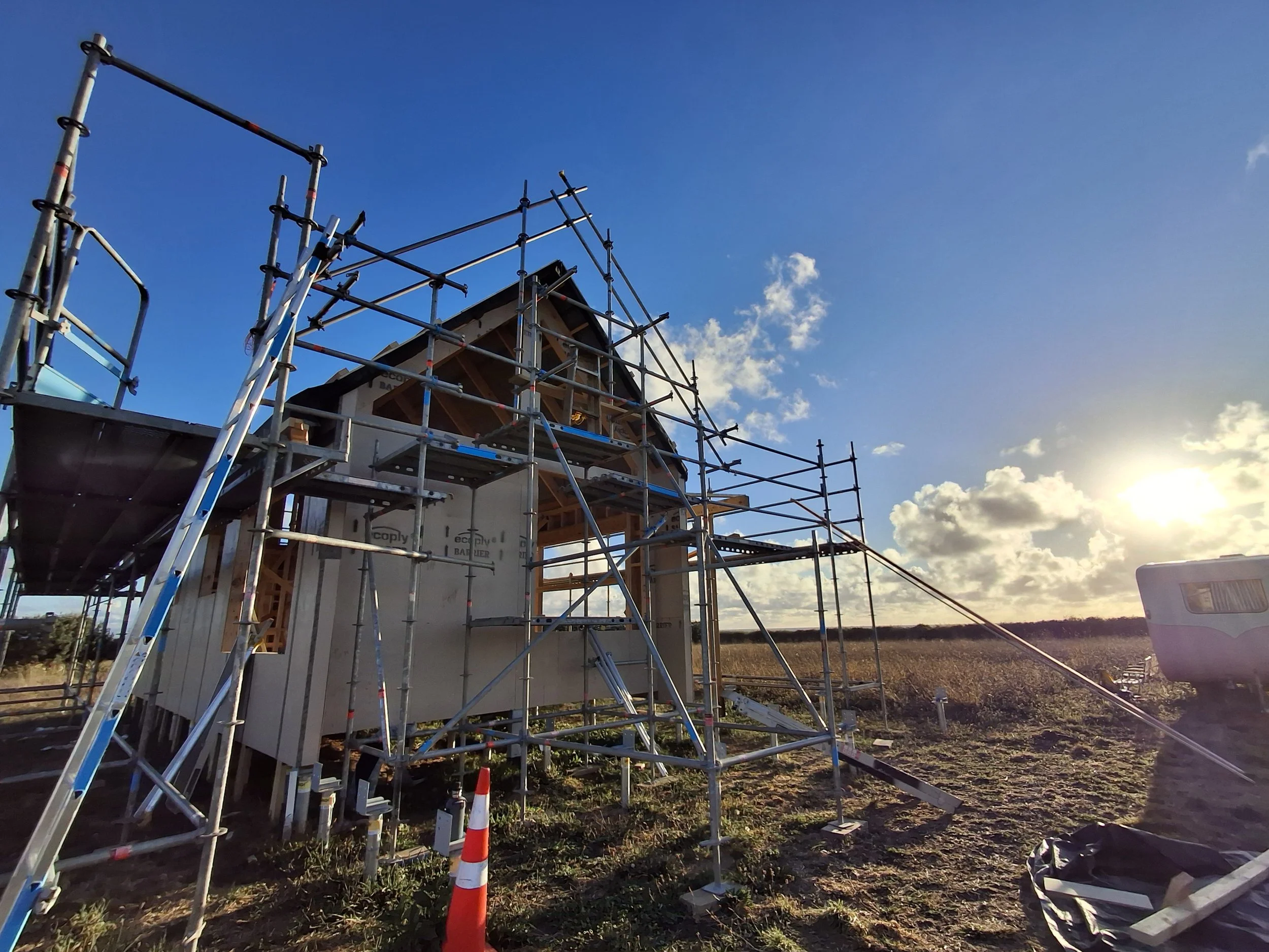The building code is being upgraded all the time, so we support your investment in futureproofing your build, where possible, so your large investment retains its value over time. Along with high performance membranes, above code insulation and screw piles, and MVHR (mechanical ventilation and heat recovery) are special features of this small coastal build- still in progress- more photos to come!