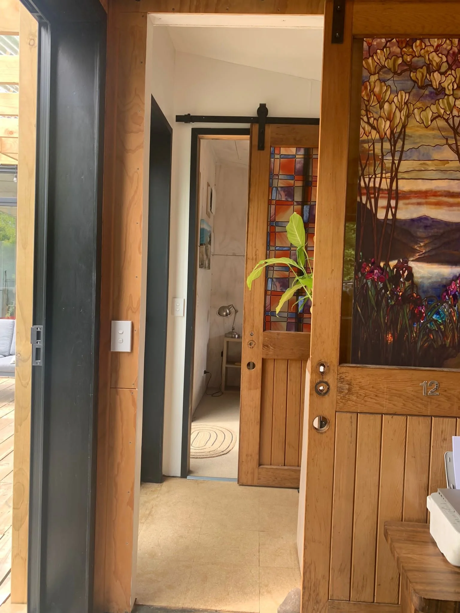 Walkthrough internal barn doors optimize space, with separate access to each area from the outside also, for privacy when required. This option for openness as required, expands the small spaces, and allows for good air circulation, and long vistas, which ensures a spacious feel, in an otherwise small space.